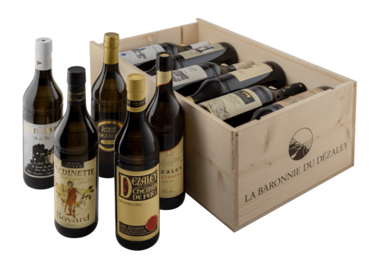 Les douze producteurs de « La Baronnie du Dézaley » vous invitent à découvrir la pluralité des expressions de leur terroir à travers son cépage de prédilection au potentiel de vieillissement remarquable : le Chasselas. Pour se faire, la Baronnie vous propose une magnifique caisse en bois contenant une bouteille de chacun de ses membres.