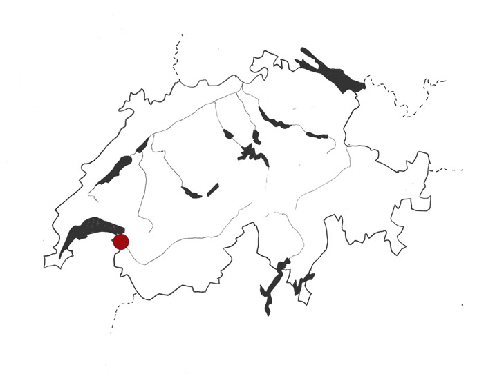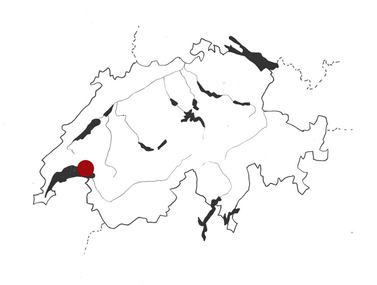 Sol profond, grâce aux murs de vignes élevés. Terre moyenne à lourde, limon sableux et calcaire. Texture fine, équilibrée, tendance au tassement. Une bonne présence de matière organique, activité des vers de terre favorisant la formation de grumeaux. Cailloux (20%), provenance moraine glacière. Bonne circulation de l’air et de l’eau en profondeur, le sol repose sur une molasse grise de 30 millions d’années.