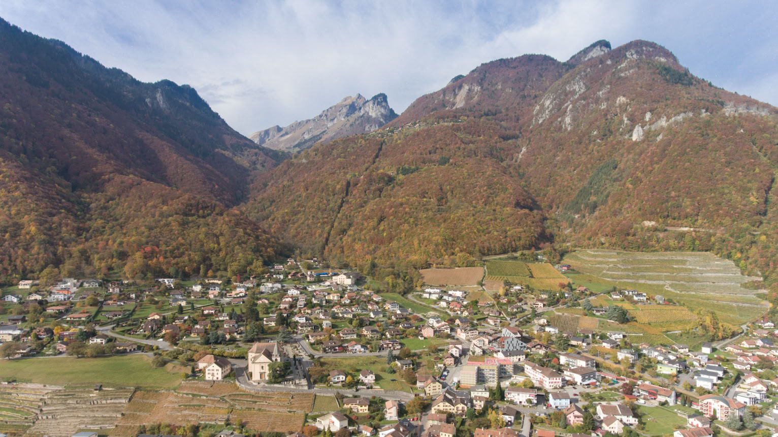 Les vignobles de Vouvry assis confortablement au pied de la montagne, dont la majeure partie de la roche est composée de Dolomie.